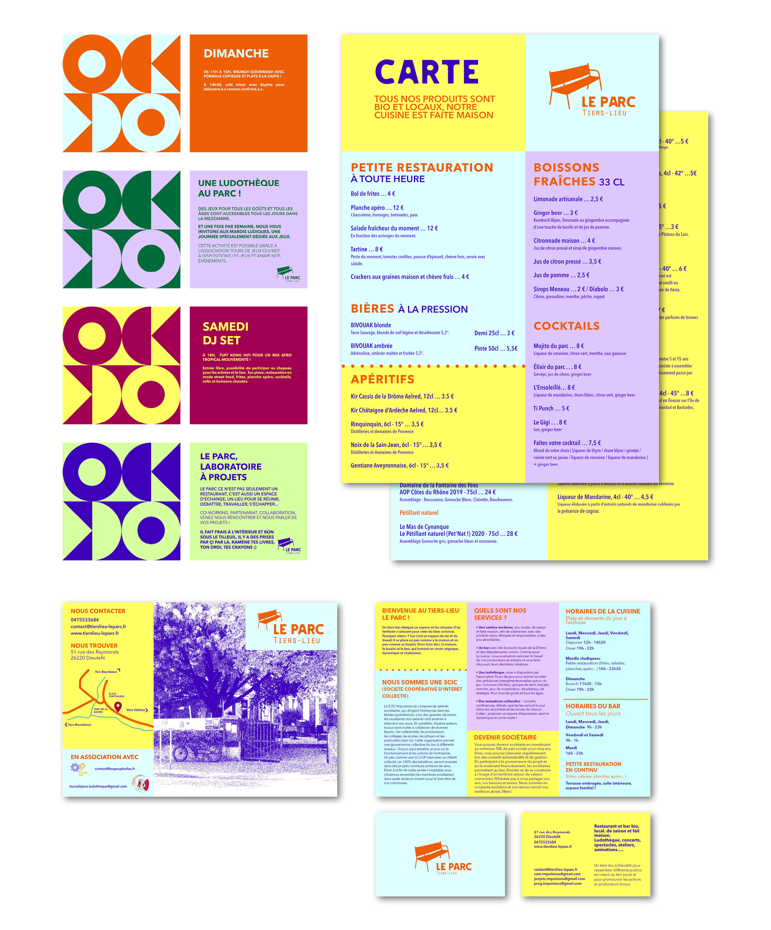 Conception et réalisation d’une charte graphique complète avec logotype, gamme colorée, assortiment typographique, gabarit de mise en page, pictogrammes, motifs et signalétique